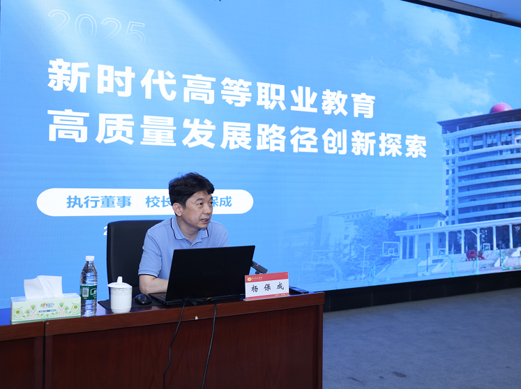 我校执行董事、校长杨保成以《新时代高等职业教育高质量发展路径创新探索》为题,从高等职业教育高质量发展的时代背景与现实困境、战略思考与路径重构、全面深化改革推动高质量发展的“黄科范式”三方面展开讲解。他指出河南省民办高职院校要学习借鉴世界一流大学质量控制原理与方法,结合高等职业教育高质量发展的现实要求,探索创新发展路径。