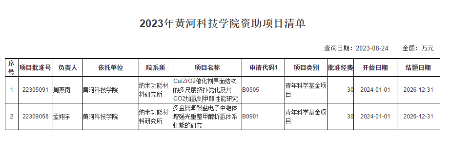 近日, 国家自然科学基金委公布了2023年度自然科学基金集中接受申请项目评审结果,我校纳米功能材料研究所周燕南博士、孟翔宇博士分别获批国家青年科学基金项目立项。此外,医学院贾安博士参与(第2名)国家青年科学基金项目获批立项。我校为全省唯一获批立项国家自然科学基金项目的民办高校。